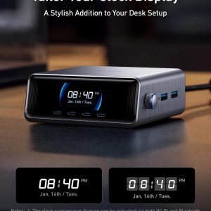 - Màn hình LCD 2.26 inch: Hiển thị thời gian thực công suất từng cổng, giúp bạn kiểm soát quá trình sạc dễ dàng.
