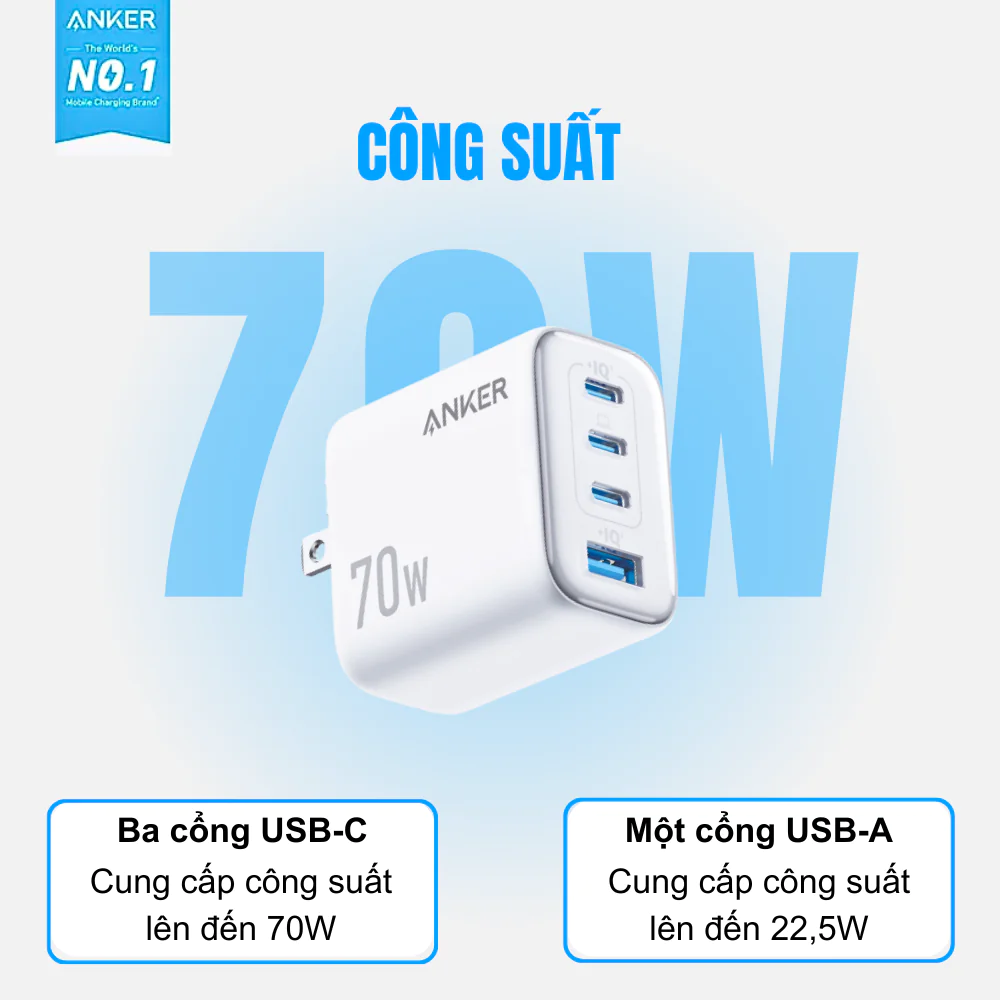 Sạc Anker 4 cổng 3C1A GAN 70W A121C – Giải pháp sạc nhanh, gọn nhẹ cho mọi thiết bị